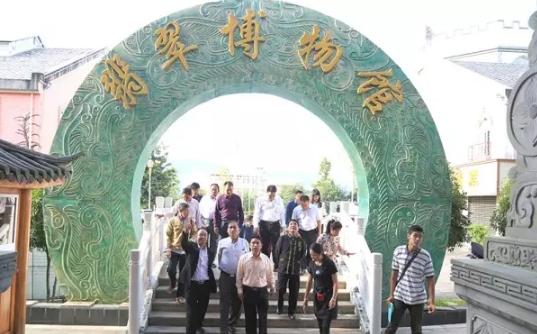 緬甸克欽邦紅十字會一行重點對翡翠博物館、騰沖中醫藥博物館、進駐園區的騰沖非物質文化遺產進行了參觀,并聽取了恒益集團關于集團基本情況及主要產業、騰沖東山康養小鎮項目的規劃及建設情況介紹。