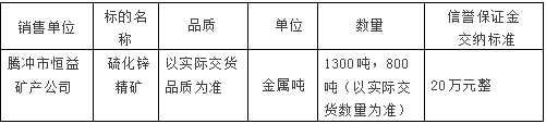 騰沖市恒益礦產品經貿有限責任公司關于鋅精礦競價銷售公告(202001)號