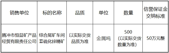 騰沖市恒益礦產品經貿有限責任公司關于鋅精礦競價銷售公告(202310)號