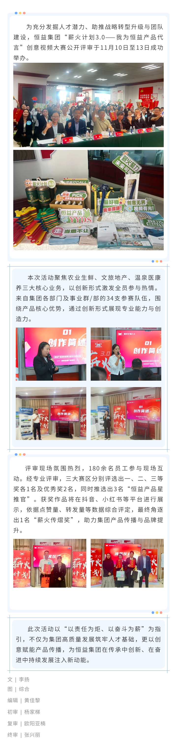 恒益集團“薪火計劃3.0”視頻創意大賽公開評審圓滿落幕 以創意賦能產品傳播 來源: 瀏覽量:1609 日期:2025-11-16 分享到: 上一篇:恒益集團與云南財經大學簽約授牌 共啟文旅育才新篇章 下一篇:東西方慈善論壇聯合創始人一行到訪恒益集團 共探公益合作新路徑