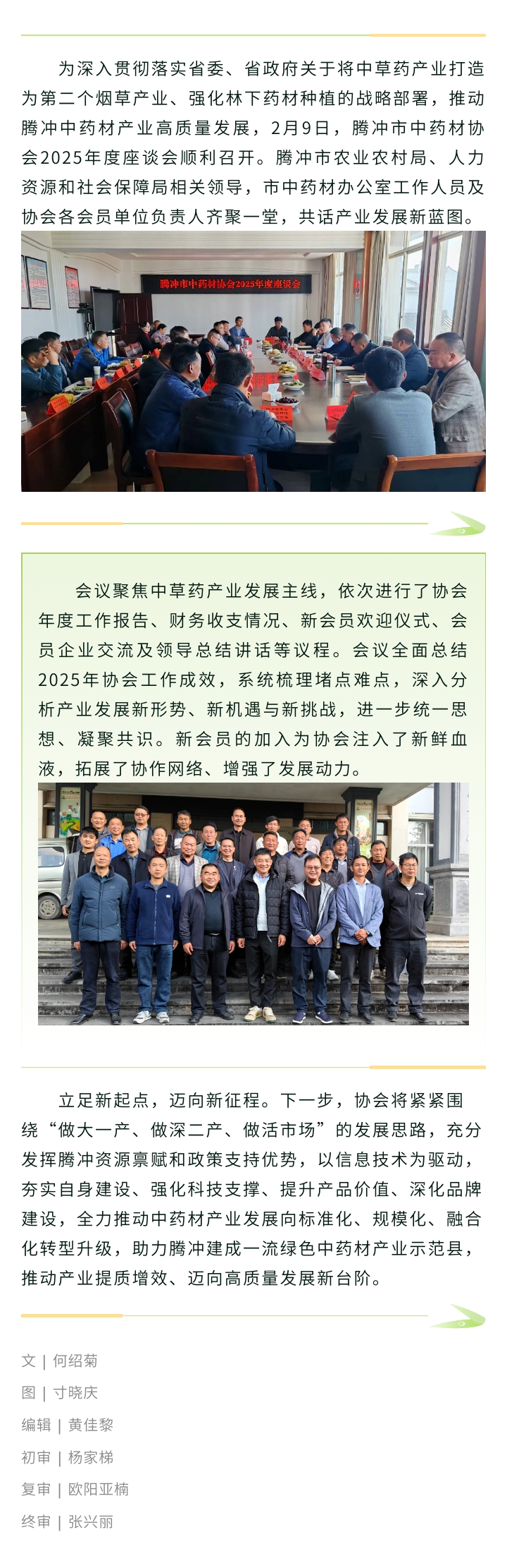 聚力謀發展,賦能啟新程——騰沖市中藥材協會2025年度座談會順利召開 來源: 瀏覽量:643 日期:2026-02-10 分享到: 上一篇:恒益集團董事長帶隊赴怒江州考察并簽訂戰略合作協議 下一篇:創新強基固根本 科技增效啟新程——恒益集團組織召開第三屆董事會第四次會議暨2025年度工作會議